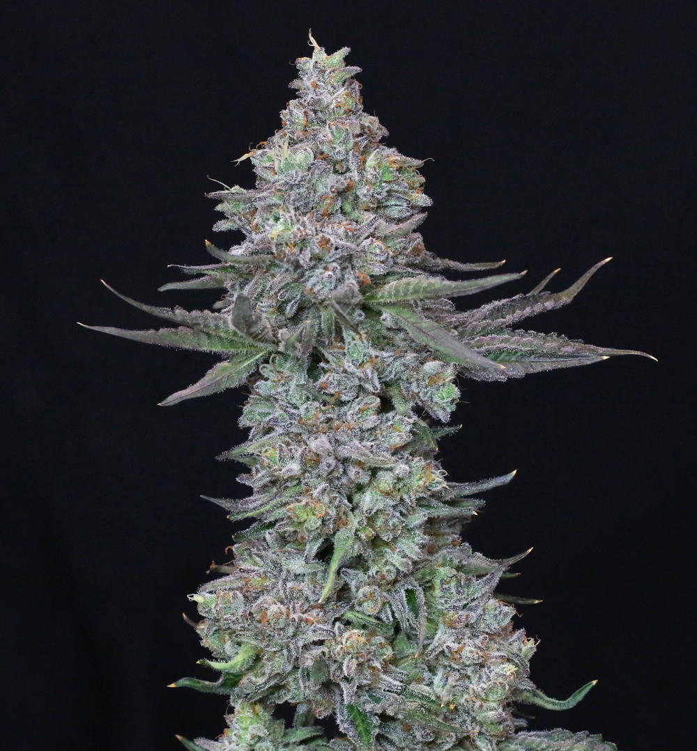 - Apariencia: Los cogollos son densos, de color verde oliva con matices púrpuras y están cubiertos por una capa gruesa de tricomas escarchados